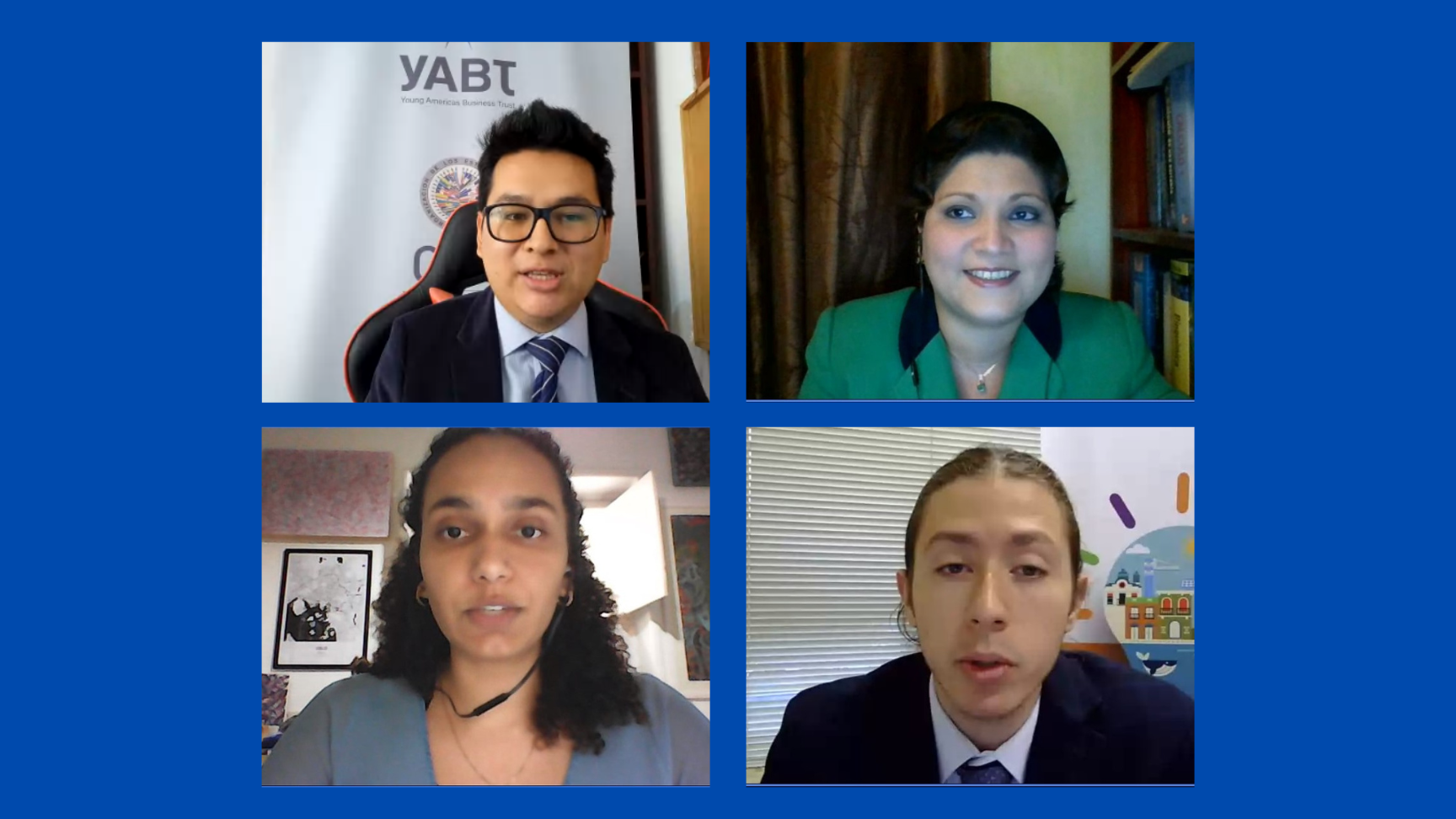 The youth of the Americas were represented by Raphaella Costa (Brazil), Carlos Alberto Gonzalez (Mexico), Juan Carlos España (Peru) and Rocío Collantes (Panama), who were in charge of presenting to government representatives of the Americas a compendium of actions developed to date and the next steps framed in the I Report on Youth Contributions of the Americas, a document that compiles and makes visible the contributions of young social leaders and entrepreneurs from the VI Young Americas Forum of the IX Summit of the Americas, organized by the Young Americas Business Trust (YABT).